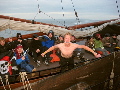Vom 11.10.2008 bis zum 17.10.2008 segelten wir wie kleine Piraten über die sieben Weltmeere. Um genau zu sein waren es zwar nur das Ijsselmeer und die Nordsee, aber trotzdem hatten wir das volle Programm. Von Monsterwellen, die uns versuchten von Bord zu spülen, über den optimalen Wind, der uns den Geschwindigkeitsrekord (9,4 Knoten = 17,4 Km/h) der Res Nova (unser Schiff) in der Saison 2008 bescherte, bis hin zur Flaute, die uns einfach nicht vorwärts kommen lassen wollte und dadurch das abendliche Duschen an Land in immer weitere Ferne rücken ließ. Dank eines Motors konnten wir immer rechtzeitig im nächsten Zielhafen gegen Nachmittag einlaufen. Das Wetter spielte auch super mit und dadurch konnten wir im Herbst an Deck der Res Nova bruzeln" und relaxen.
